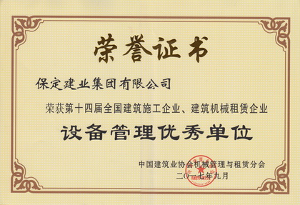 全国十四届设备管理优秀单位-证书