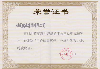 省“用户满意辉煌二十年”优秀企业